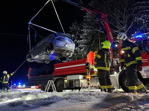 Am 10. Jänner 2026 wurde die FF Klaffer um 19:02 Uhr zu einem Verkehrsunfall nach Pfaffetschlag alarmiert. Ein Elektrofahrzeug war bei Schneefall von der Fahrbahn abgekommen und in einen Bach gestürzt.