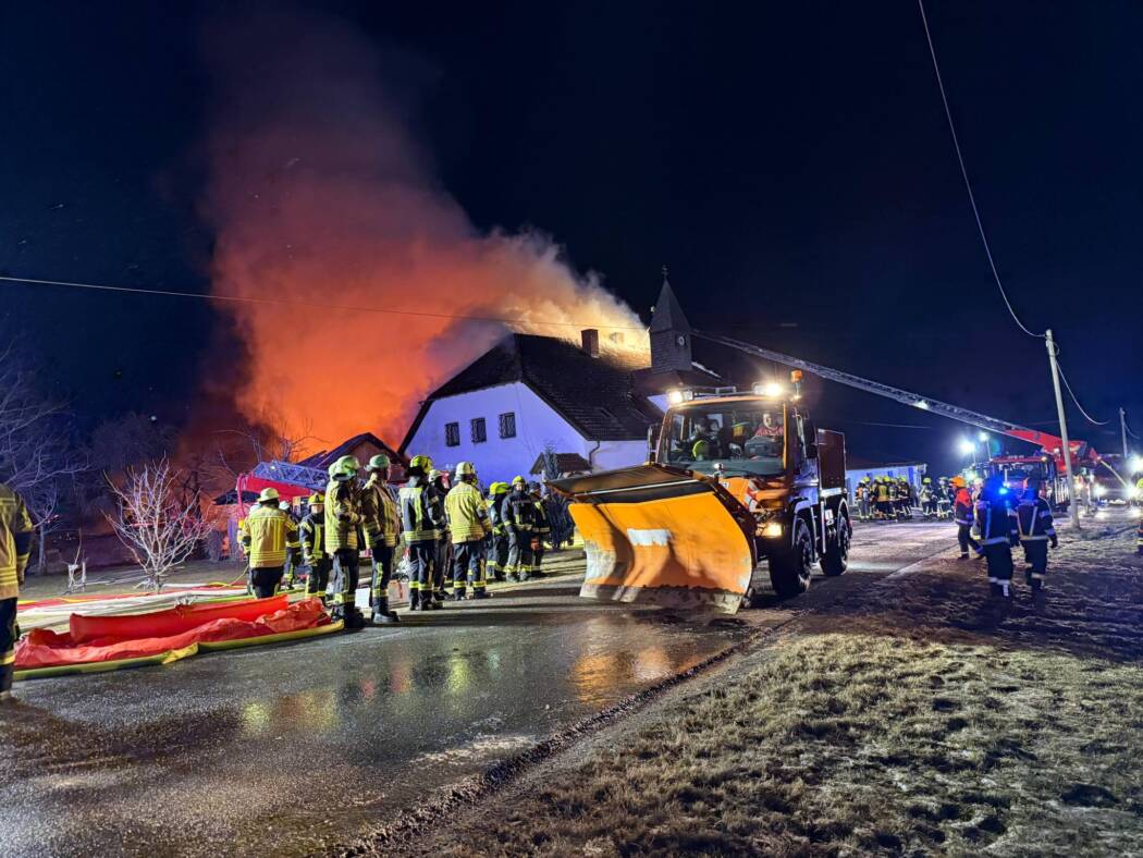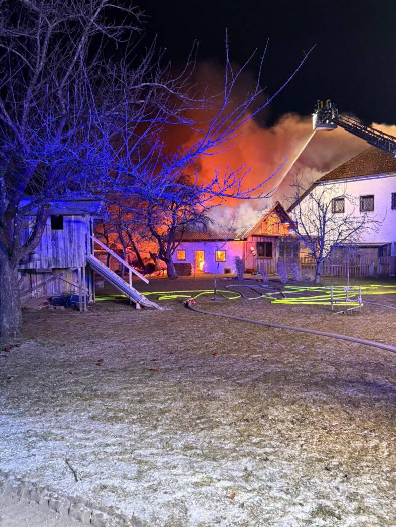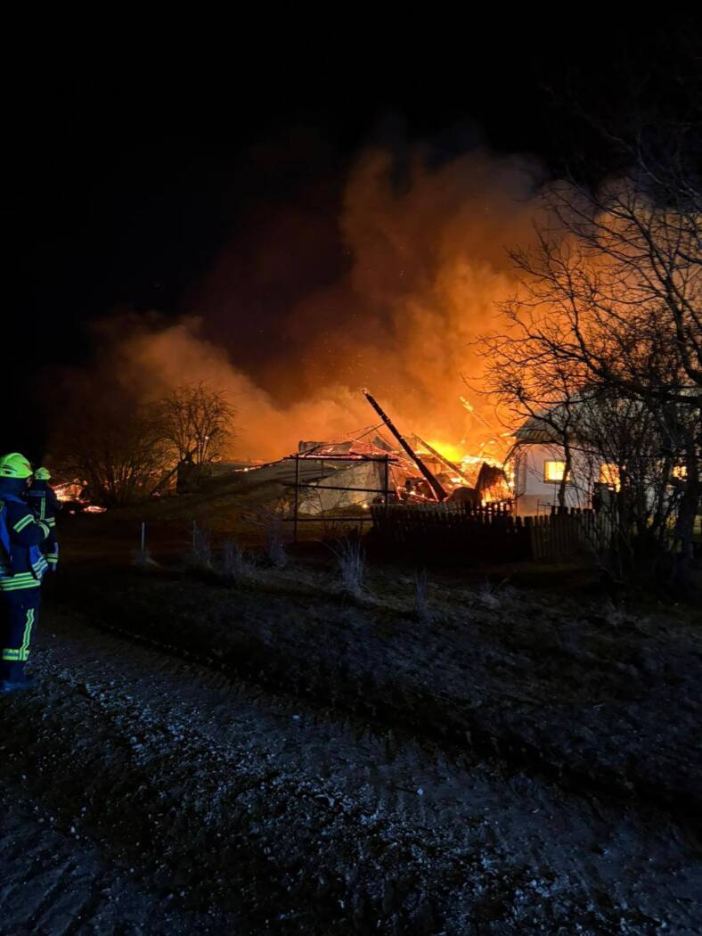 Erschwert wurden die Löscharbeiten durch eisige Temperaturen und starken Wind. Trotz des intensiven Einsatzes aller Kräfte konnte das gesamte Gebäude nicht gerettet werden.