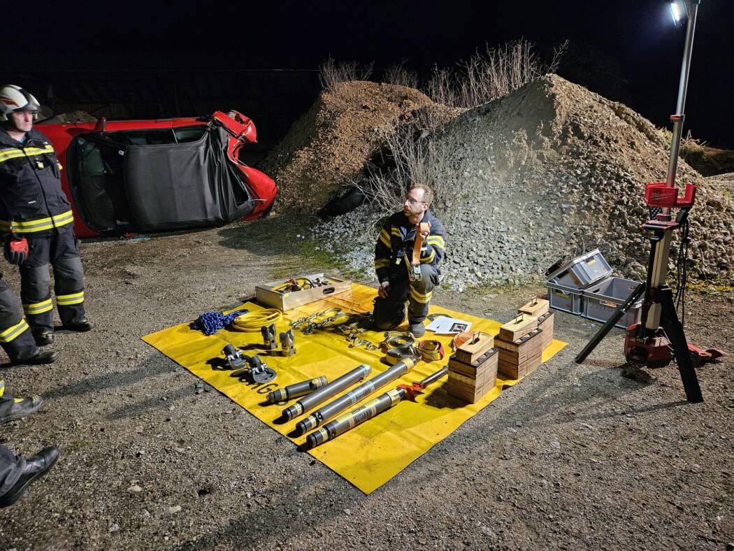 Bei der ersten Station wurde der Umgang mit dem Abstützsystem Paratech intensiv beübt. Die Kameradinnen und Kameraden konnten ihr Wissen im sicheren Stabilisieren von Fahrzeugen und Konstruktionen festigen und erweitern. Besonderes Augenmerk lag dabei auf dem richtigen Aufbau, der sicheren Handhabung sowie den vielfältigen Einsatzmöglichkeiten des Systems.