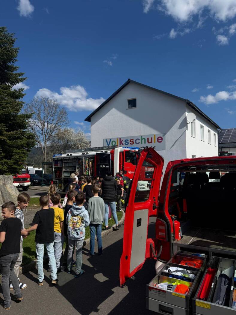 Im Anschluss an die Übung hatten die Kinder der Volksschule noch die Möglichkeit, unsere Einsatzfahrzeuge aus nächster Nähe zu besichtigen. Mit großem Interesse wurden Geräte erklärt und viele Fragen beantwortet.