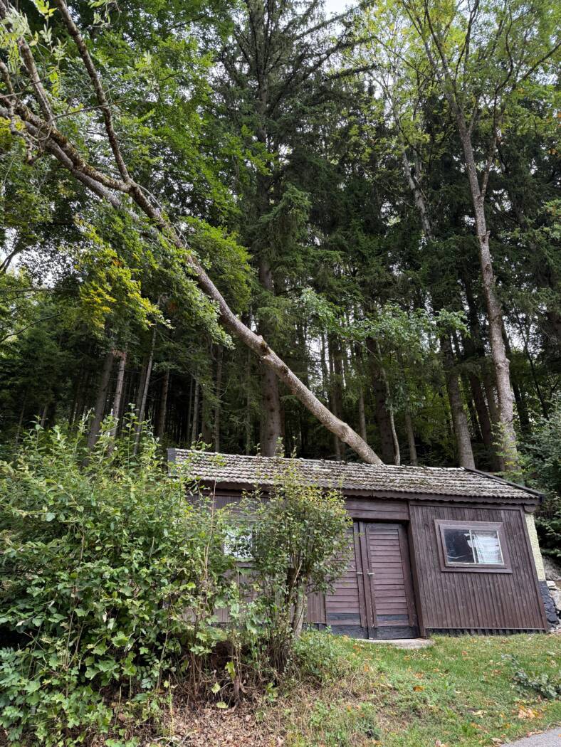 Ein Baum war aufgrund des starken Windes in Schieflage geraten und drohte sowohl auf die angrenzende Straße als auch auf eine nahegelegene Hütte zu stürzen. Nach einer ersten Lageerkundung wurde entschieden, die Arbeiten gemeinsam mit den bereits verständigten Gemeindemitarbeitern durchzuführen.