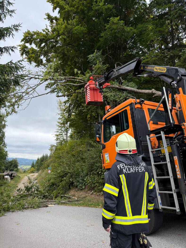 Mittels des Kranfahrzeuges der Gemeinde konnte der betroffene Baum fachgerecht entfernt werden. Die Aufgabe der Feuerwehr beschränkte sich vor allem auf das Absichern der Einsatzstelle sowie das Unterstützen der Gemeindearbeiter während der Arbeiten.